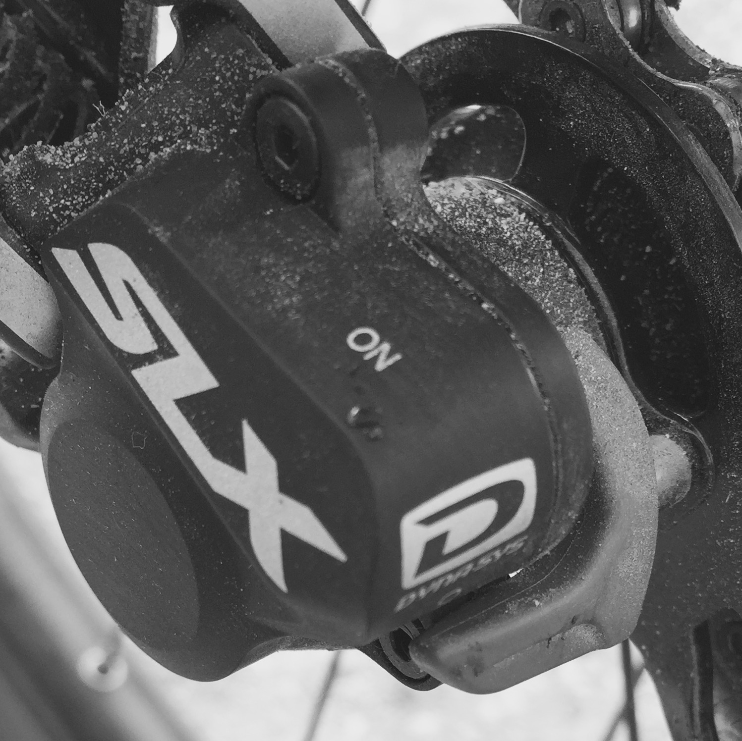 Това е за клъч механизма. Когато е в позиция ON стабилизира дерайльора и веригата и намалява движеннието им в следствие на силни вибрации/неравен терен докато не ограничава превключването на предавките. Много полезна функция която аз не изключвам дори когато карам на равно.