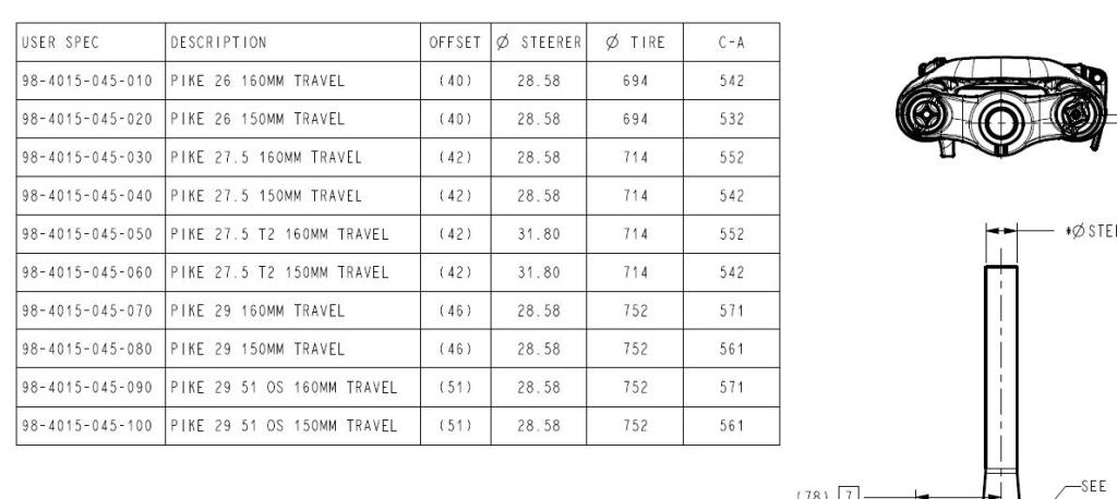 Пайкчетата са от 532 за 26/150мм, до 552 за 27.5 160мм.
