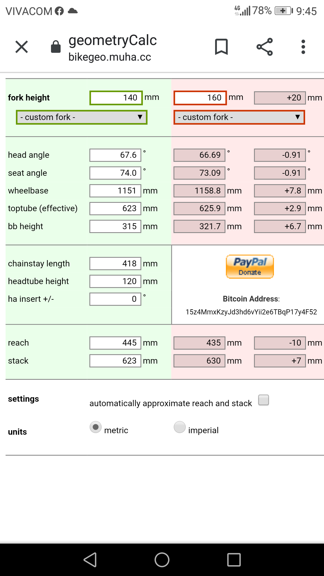 По калкулатора излизат промените,но незнам повишаване на средното движение с 7 мм. и ъгъла на седалковата от74 °на73° дали ще се отрази негативно на карането.
