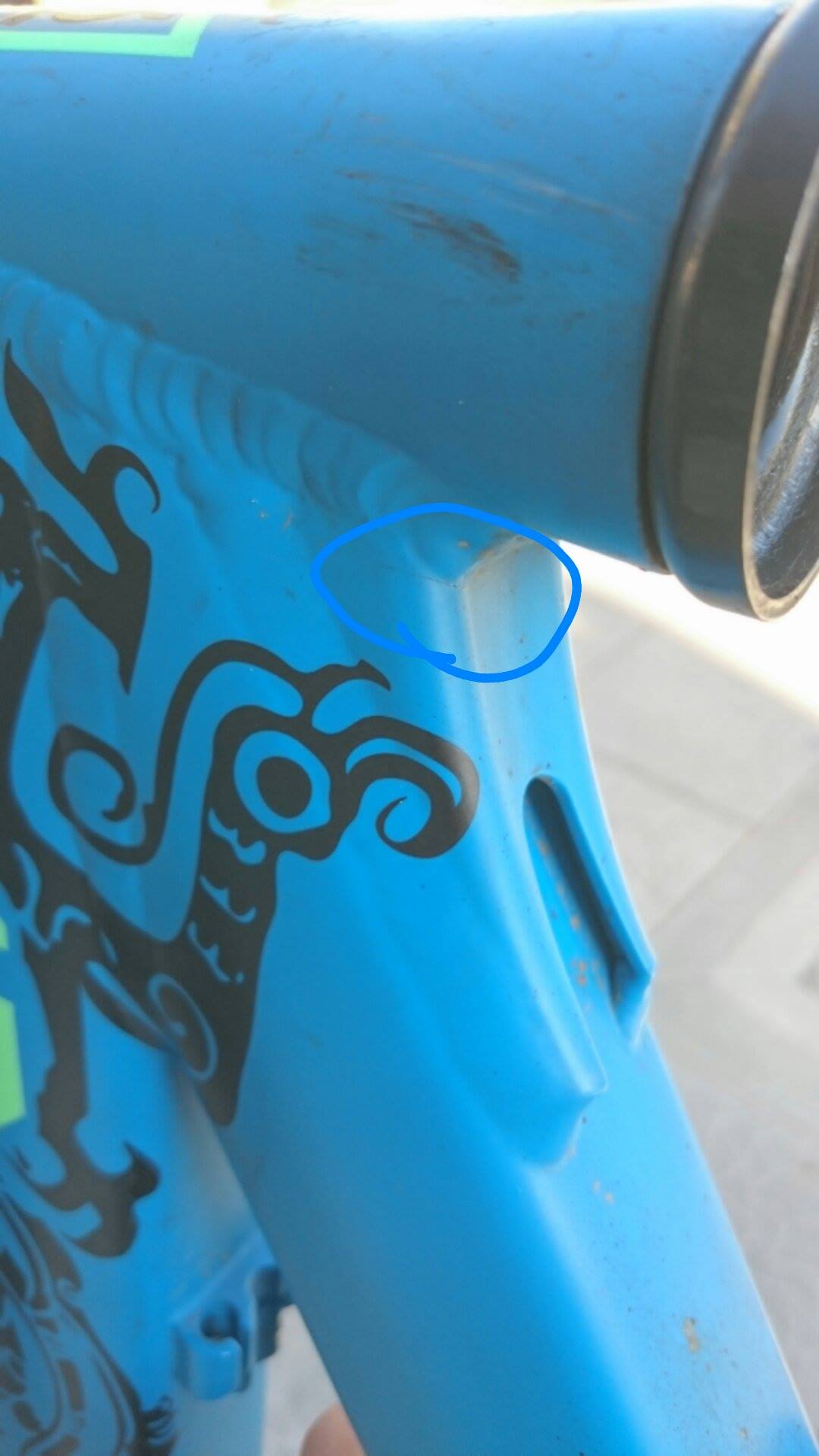 Ами каза ми един,че е боята,друг,че е сцепено.Гледах го,отдолу се вижда метал.Немога да разбера дали е сцепено.Карана е преди с 160мм марзоки,сега е с 100мм дуро.Не карам сериозно,главно градско,но ми се ще ако я напъна малко повече да не стане беля.Това,което си мисля е,че е на подсилката отдолу,а не на самата рамка,но незнам