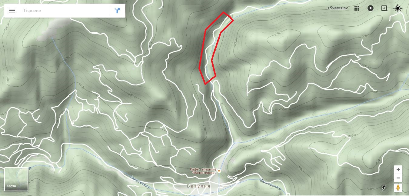 Днес реших за пръв път да пробвам някой от track-овете нaд Батулия и финиширах в епизод на Ultimate Survival. Участъкът от пътя в червено на картата е почти изцяло отнесен от свлачища и преминаването през огромните камъни, сипеи и самата река е изключително трудно и доста опасно. Това е по каменистия път на север от селото покрай реката, след моста - до моста всичко е ОК и може да се продължи по него и пътя изкачващ южния склон. За съжаление много от track-овете (публикувани в сайта/bikemaps/GPSies) ползват този участък....
