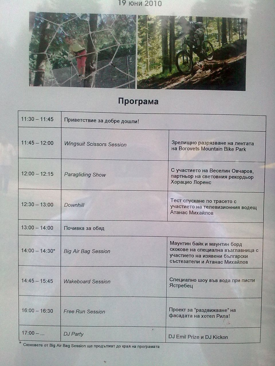 Като част от програмата за откриването на летния сезон в Боровец на 19-ти юни от 14:00 ще се проведе DRAG BIGAIRBAG SESSION и TEST DRIVE на велосипеди DRAG и DRAGOMIR. Освен демонстрация на едни от най-добрите байкъри в страната ще има възможност и за свободни скокове за всеки желаещ да се позабавлява с гравитацията.