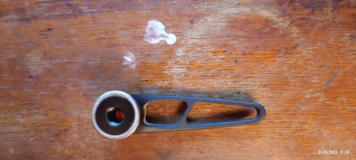 Може би при лепенето трбваше да навия още.Наложи се да лепя на две места един път елемента с резбата към шлица и после двете към оста ,на която има вътрешна резба,Тука трбваше да навия повече,но ме беше старах да не се залепят частите за рамката,сбърках!Сега май ще е трудно да разлепя частта която отива към оста,пише че може с нагряване.