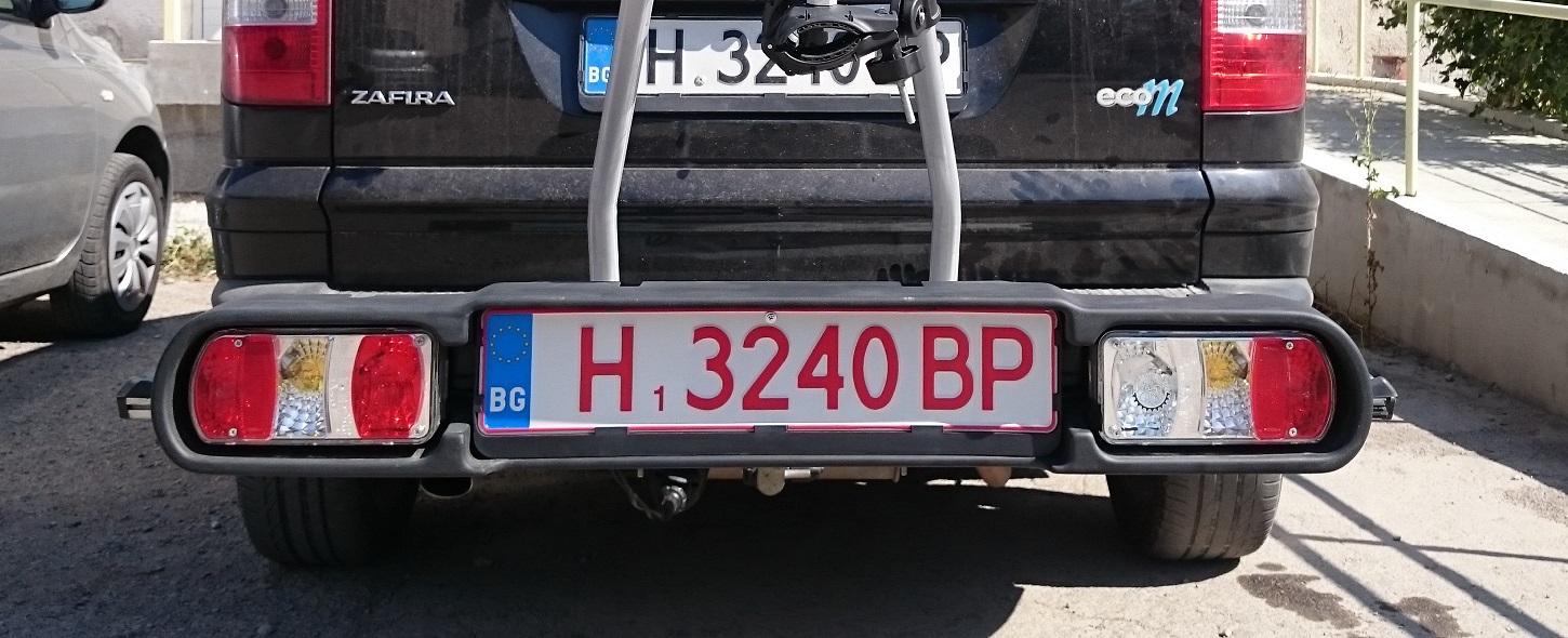- Паркирате вътре покрай сградата с каналите и се нареждате на опашката пред аквариума на входа. Когато ви дойде реда, подавате на гишето "етикета от солети", на който е написан входящия номер на вашата молба, обяснявате, че сте за трета табела за вело-багажник, подавате също голям+малък талон, лична карта и полица за застраховка ГО. Девойката им тегли по един телбод, въвежда данните в системата и ви подава заявлението, което е попълнила на компютъра вместо вас. Към него са прикрепени с въпросния телбод двата ви талона и етикета от солети. Плащате си таксата за табелата и отивате до бялата будка в двора с каналите, в която стои полицай, който ви взима талоните с етикета от солети и заявлението, и ви посочва канал, пред който да се наредите. Да уточня, че не е лошо периодично да обяснявате, че става дума за трета табела за вело-багажник, тъй като ще срещнете не един озадачен поглед.