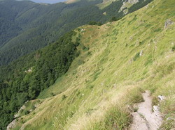 Станахме рано. Росата беше обилна и беше малко хладно рано сутринта. Поехме веднага. Отново същия терен, непозволяващ да се кара, само бутане и това е. Баир след баир, пътека обрасла в трева и изключително неравна, като държа да отбележа, че връх Паскал е висок 2029 м.