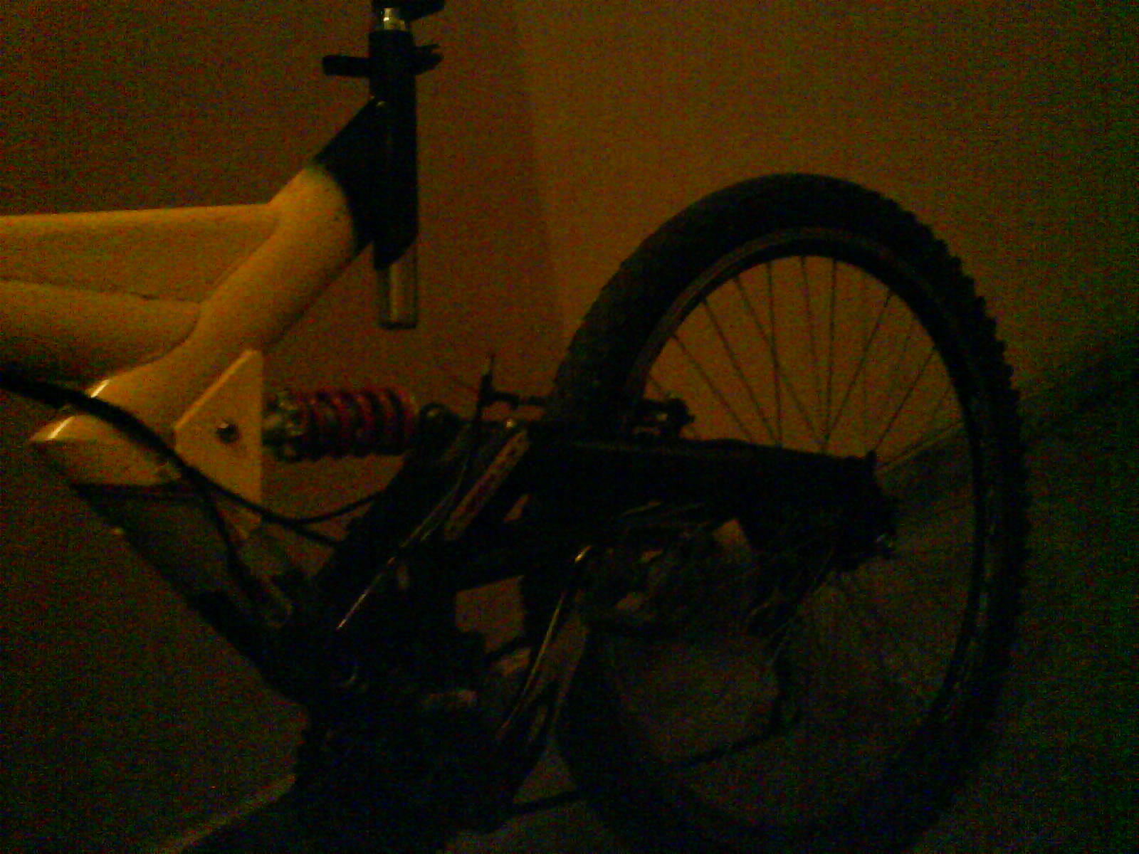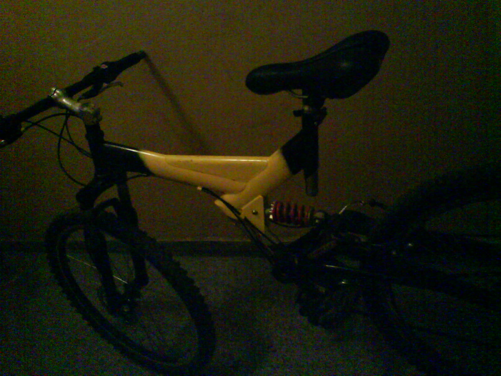 Колелото е в Пловдив.Рамката е жълто-черна,амортисьора черен.Седалката е selle royal