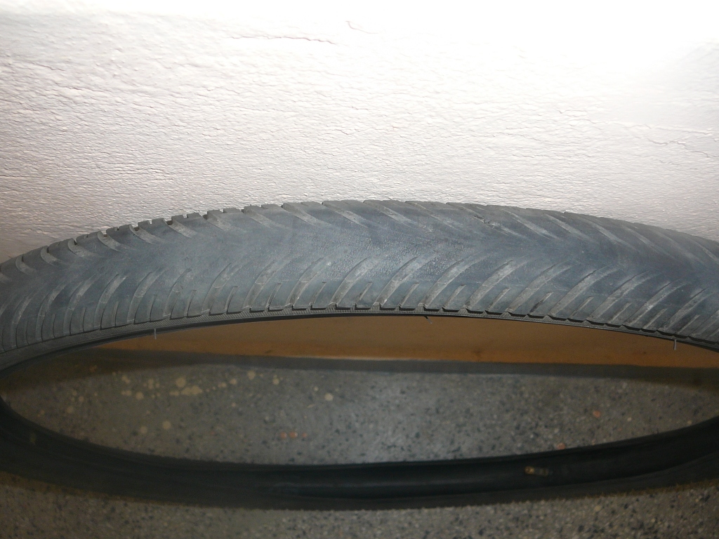Всичките гуми, с които съм карал досега, все са били от най-ниския клас и съм изкарвал с тях хиляди километри и съм ги сменял заради изтънелия грайфер. Само тази ме изкара едва 100-ина км. Шината ми наистина е леко крива, но не съм я изкривил точно преди да сложа Рубената, така че едва ли там е проблема. До преди около година карах с Schwalbe и едва ли е била от ПВЦ, но и с нея изкарах хиляди километри. Каквото и да ми говорят, не мога да се съглася, че е нормално гума да не издържи повече от 100 км, пък ако ще шината ми да прилича повече на многоъгълник отколкото на окръжност и ако ще на всеки 10 метра да съм набивал спирачки.