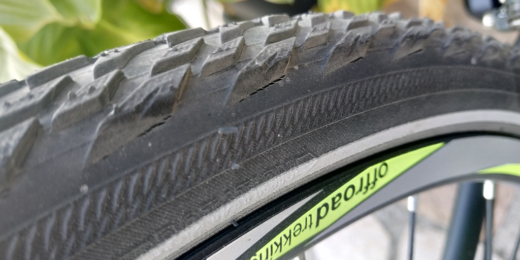 Явно доста време е стояло колелото в магазина / склада, или гумите са стояли много преди да ги монитар на новото колело...