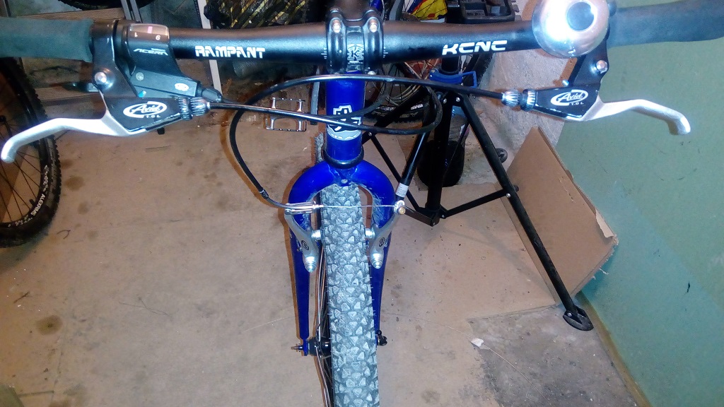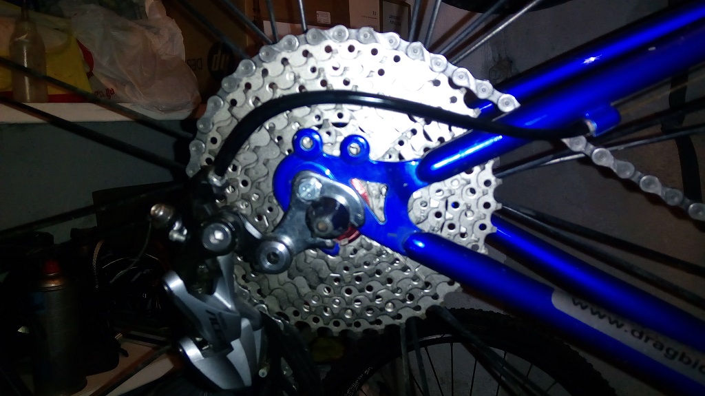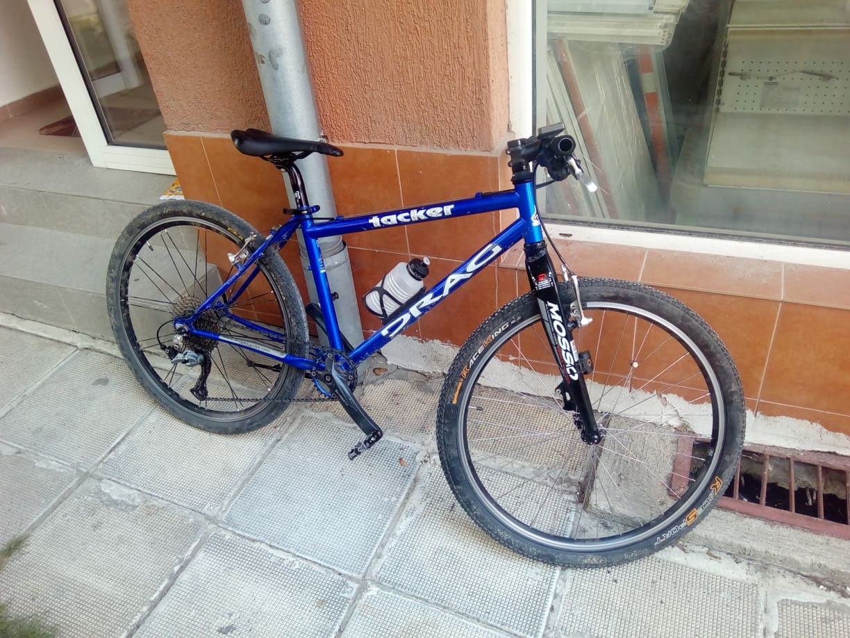 1х9 с монтаж ацера 3000 ,овална плоча 32т ,касета 11-34 ( поръчал съм 11-40 но май я загубиха куриерите от Китай ,ще се наложи да си искам парите ) едно универсално ухо от ОЛХ пасна добре ,капли нови като задната е вече с нормален фрихъб на шлиц за модерни касети ,алуминиево колче лапа и кормило ( оригиналните са стомамени ) като подбрах леки части - кормилото е само 115 грама ,лапа 100 грама ,колчето е около 250 грама ,седалка Selle San Marco ( 250 грама ) ,леки гуми ( 280 грама задна ,400 предна ) ,200 грамови педали ; получи се около 11 кг стоманено твърдаче ,много приятно за каране .Щерката го хареса ,тайната ми идея е да я зарибявам да кара из горите ,до сега имаше едно много тежко ( над 15кг) колело което не става за нищо освен леко каране в парка .