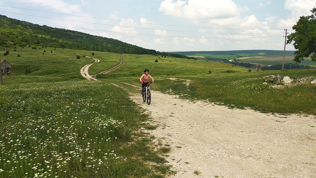Гигантя се сдоби с вилка - Rockshox 30 Gold ,приятна и лека въздушна виличка . На 45 пси работи много прилично с 40 кг ездач . Щерката кара наравно с мене ( е ,на спусканията е още далеч но с тоя твърдак толкова за сега ). Ето малко снимки от днешното каране 52 км +1000м .