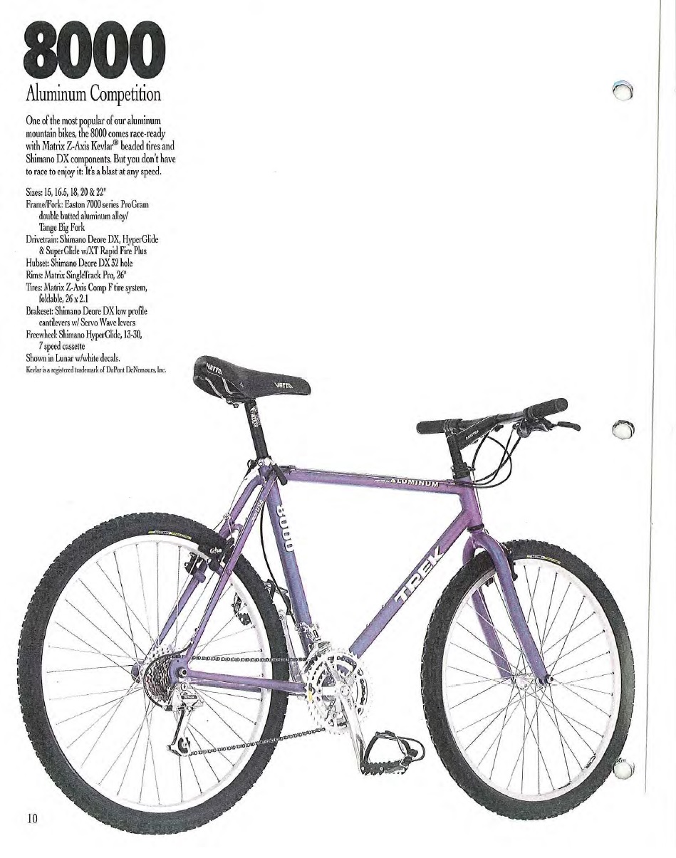 Здравейте, попадна ми много запазен и със 100 % оригинални части байк ТРЕК 8000 от 1992 година. И преди съм работил по ТРЕК (може да видите останалите ми теми във форума) и съм силно впечатлен от качеството и използваните материали в тези велосипеди. Тук целта ми е само да разглобя, почистя, (окабеля :) ) поръчах предна гума от HIBIKE Germany благодарение на отзивчиви членове на форума разбрах за Добри от Сливен. Задната гума е Bontrager LT3 26" 2.0 , много ми хареса тя е напълно нова и в много добро състояние , та реших да сложа и предна такава. Махнах някакви скоби (явно е имало калници по някое време) не оригинални ще ви прикача и снимка от каталога. Има лека патина по рамката тук таме някоя ръждичка на болтовете на кантарните спирачки която ще отстраня по моя начин като ги сваля изчеткам на шмиргила с месинговата шайба (така пада освен ръждата и напуканото хромирано покрите до здрав метал) след което ги оксидирам или с WURT или ги нагрява с горелката и потапям в (машинно моторно) масло . Седадлката също е за освежаване оригналната е Селе Турбо VETTA кожата е протъркана на места и суха , но си личи качеството ще я подхраня с крем за ръце :) и малко боя за обувки на протритите места. Друго не се сещам освен да сваля веригата и задния дерейльор и курбела и да ги почистя от наслоеното масло през годините, хем се дразня, че повечето хора слагат много смазка по велосипедите си но от друга страна така ги запазват за хора като мен след време като се махне от долу излиза истински диамант :) Така, че следете процеса и питайте ако нещо Ви интересува. :wavey: :beer: :popcorn: