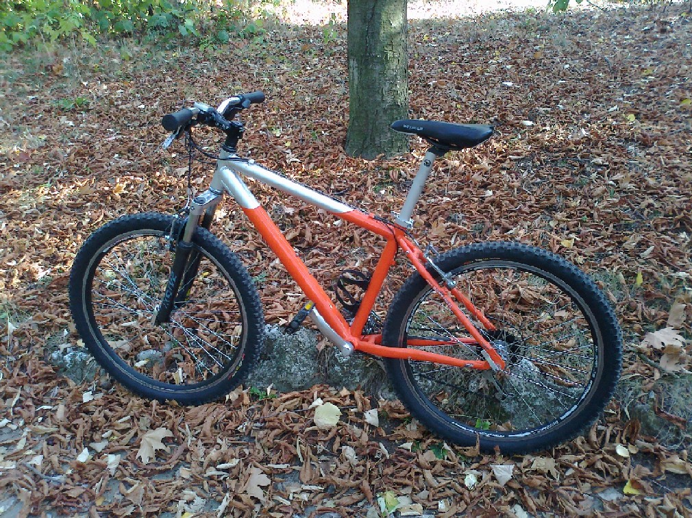 С Shimano Saint курбели и средно, водач, 2 ротора от 203мм, заден преходник, кормило, педали, верига и касета :)
