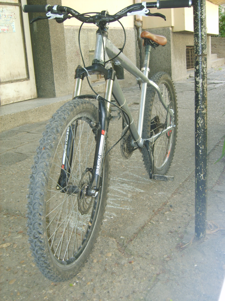 Станка вече е ъпгрейдната (просто все забравях да пиша), има вече задна хидравлика (същата) с алигатора който мина вече отзад, а отпред съм сложил 180 алигатор и заден дерайльор shimano xt (old school модел) :D , колче (не знам марка, но по-дълго и по-здраво от старото :D ) и сега и остана само да се сдобие с по-хубава вилка, ново кормило и лапа евентуално