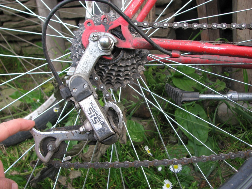 Ако отпред си на средна или голяма плоча, със сигурност трябва да смениш дерайльора. Отделно и касетата и веригата изглеждат като за смяна.