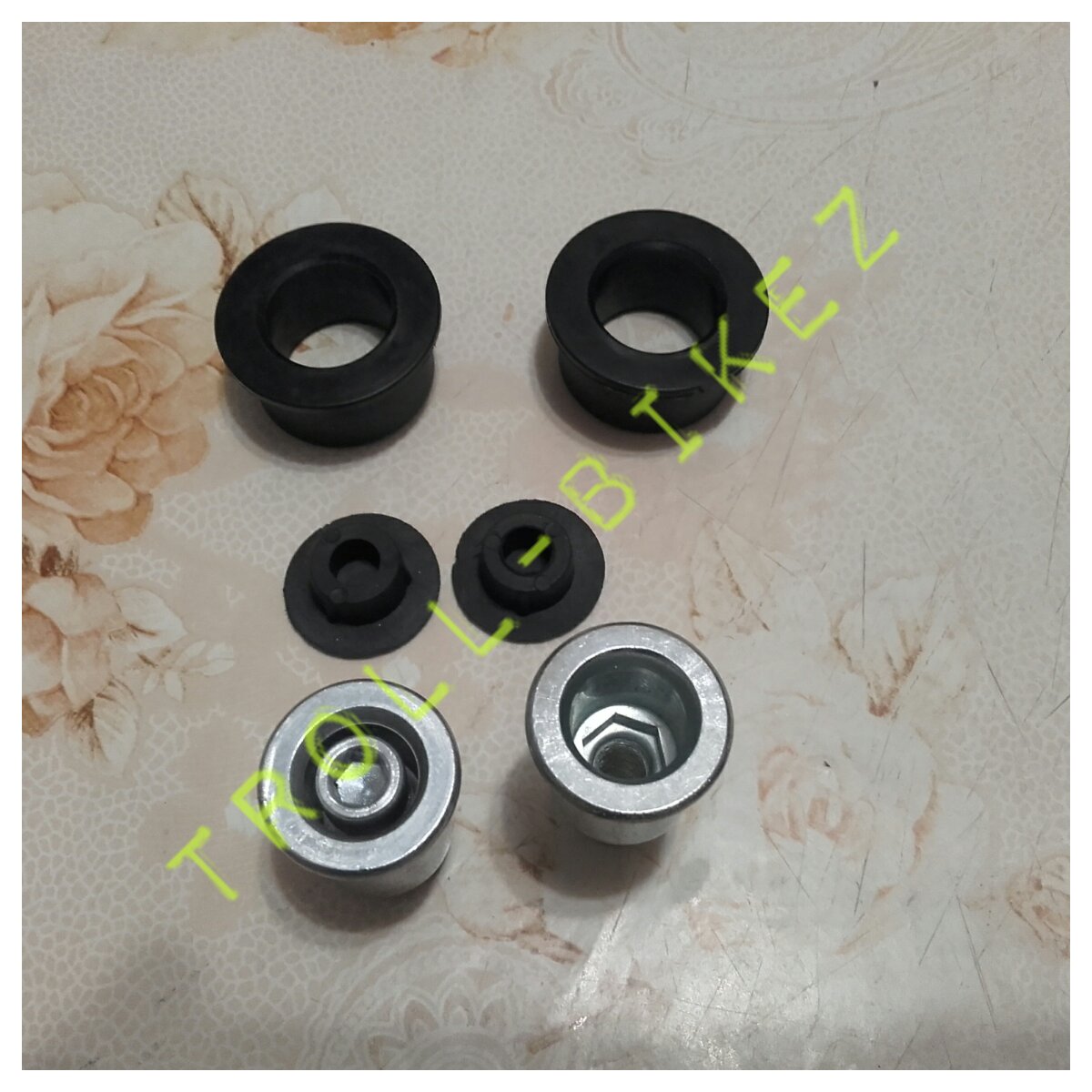 Това представлява комплекта с втулки и тапи. Имам един, бях го взел за ремонт но откраднаха колелото и не го сложих така или иначе. :)
