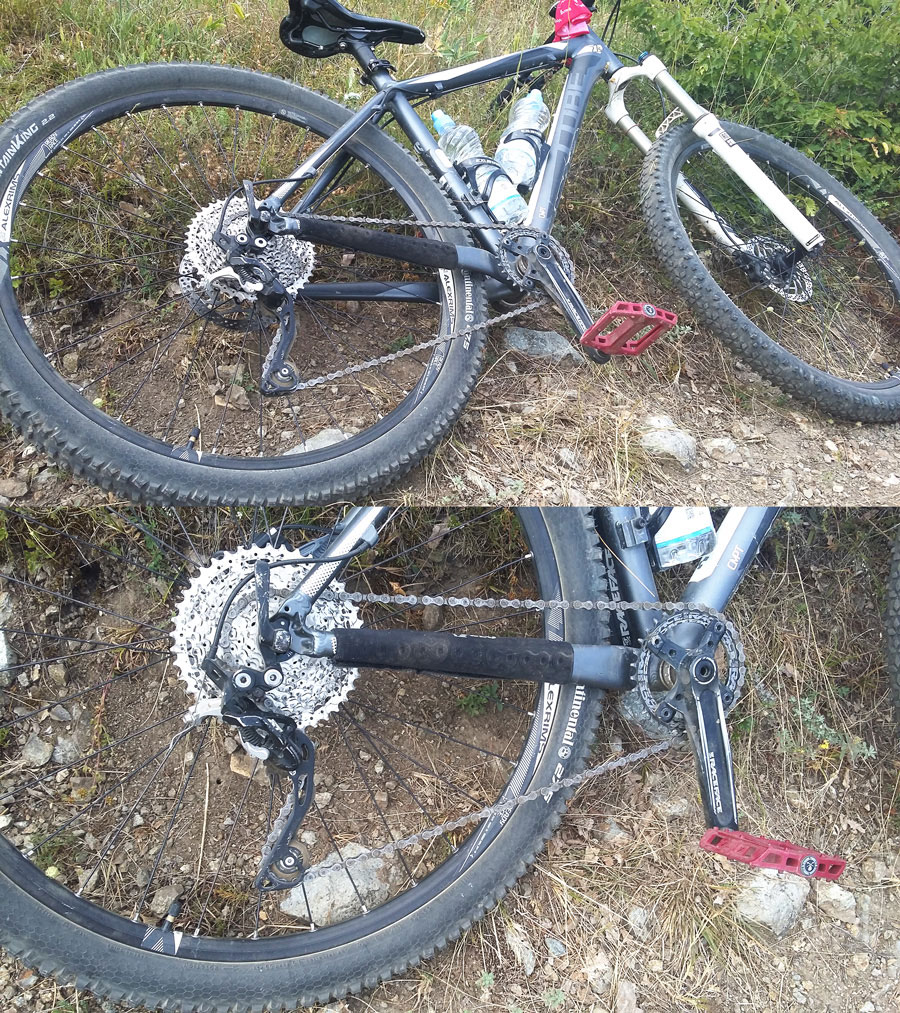 Смених направо цялата верига, защото се беше поизносила. След това малко въртене на болтчетата на дерайльора и в момента работи отлично.