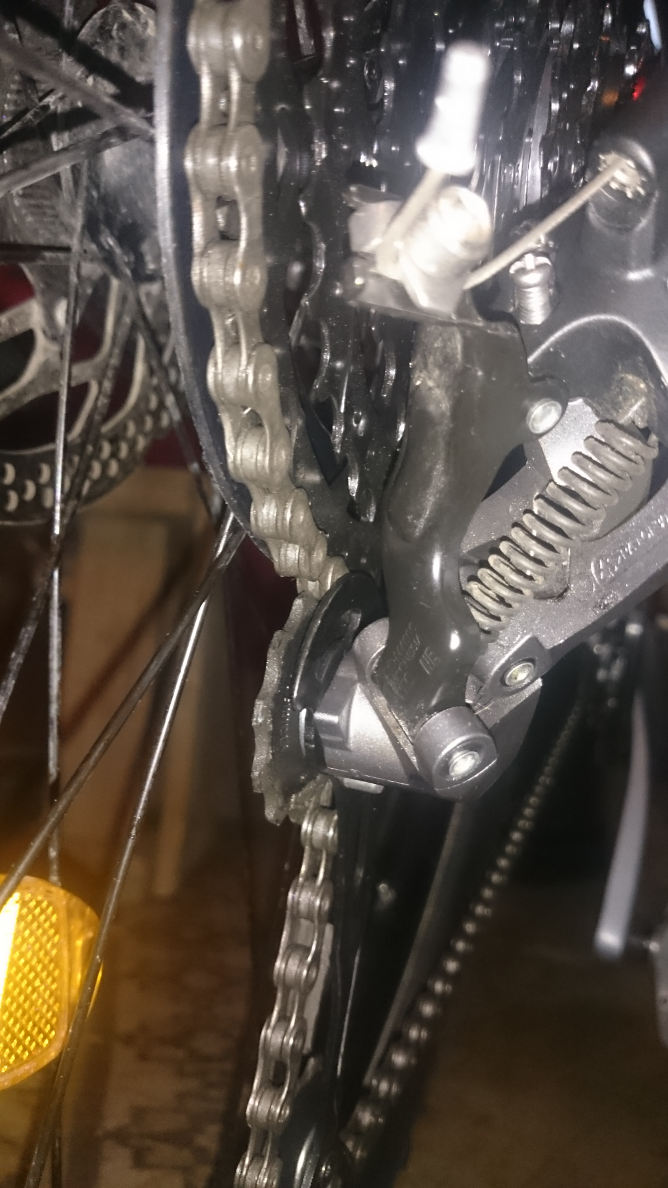 Но днес чак като прочетох из форума че подобни касети са за конфигурации 1x или 2x се чудя дали е въобще възможно ли е въобще да се монтира подобна касета на моя велосипед в конфигурация 3x9. Не знам дали не трябва да се смени и веригата и на това да се дължи това опиране на дерайльора. Иначе като натисна дерайльора надолу като че ли има още ход и не е чак толкова опъната веригата. Някъде из алито видях и някви адаптери май дето удължават рамото на дерайльора за работа с такива касети или нещо подобно. Не знам дали също да не би да трябва да се смени и ухото на рамката с някакво по дълго. Малко съм бос в по-съвременните байкове така че ако някой даде акъл ще съм му признателен.