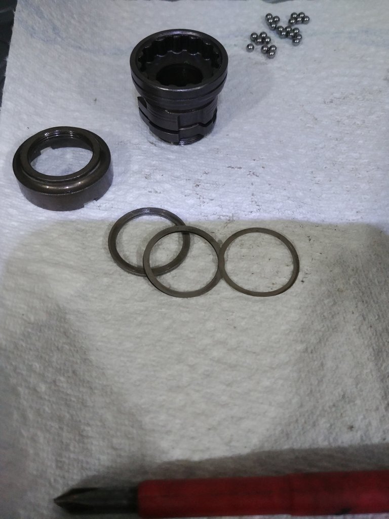 Прилагам схема на сглобката на такъв тип главина. Забележи механизма на свободното движение отделен от тялото. Обикновено се прикрепя с кух болт с шестограм 10, 11 или 12мм (14 или 15мм при някои модели с куха ос). При някои главини болта е достъпен от ляво, при други от дясно. За да го разглобиш обаче НЕ ТРЯБВА да го сваляш. Трябва да махнеш уплътнението над десния лагер както и самия лагер. Гайката, която затваря целият механизъм играе роля и на легло за носещият лагер. Тя винаги е с обратна резба.