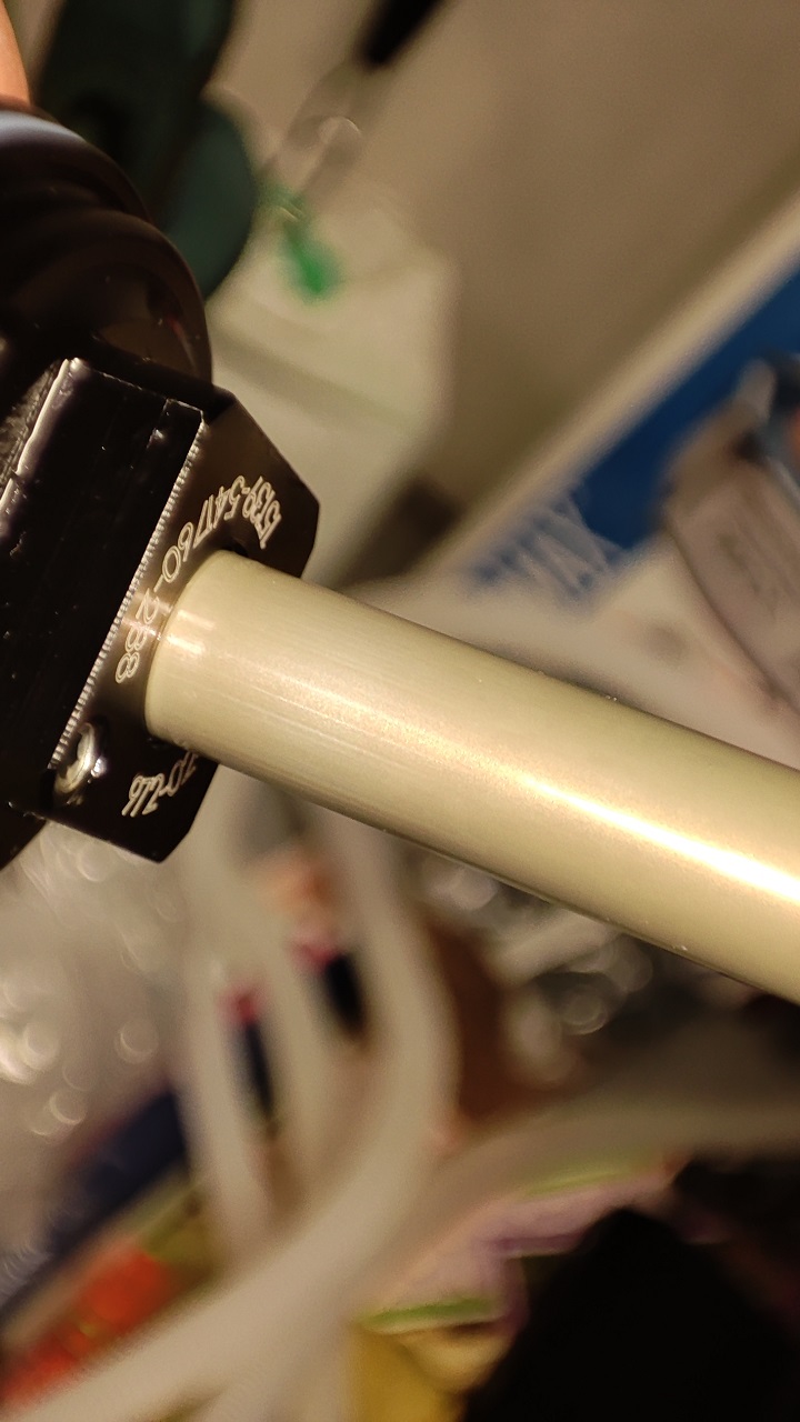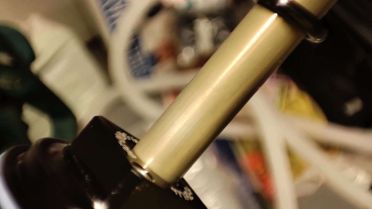 Шока е на 5 г. и 600 часа каране. Въздушната камера съм я сервизирал поне 5-6 пъти, смяна на уплътнения, fox fluid. Другата камера от 2-3г. има едно глухо почукване при ход дори 5мм нагоре-надолу, но не е отваряна (макар да съм се запасил с рем.комплект). При поредното отваряне за почистване на въздушната камера вчера, забелязах надиране по ствола, горе долу в зоната на сага, т.е. там където ствола е най-често, спрямо горното уплътнение на камерата (ИФП камерата). Надирането не е на едно място, а по цялата окръжност, което ме кара да си мисля, че не е от чуждо тяло, а може да е износване от употреба. Макар и плитко, се усеща с нокът, не е само визуално. Засега ми се струва, че няма загуба на налягане на IFP камерата. Прилагам и макроснимка, ако може да се прецени мащаба на проблема.