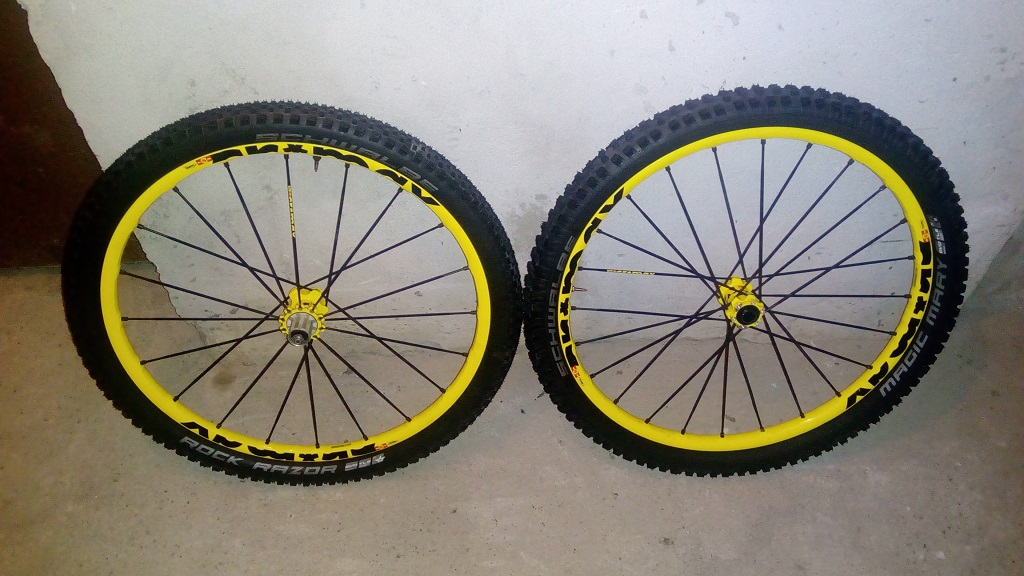 да споделя малко впечатления от истински UST капли ,mavic crossmax ( с оригинални вентили дойдоха ) .. купих си нови гуми за тях ,на майтап ги надух без боза за проба - след 3-4 дена видях че не са спаднали и излязох да покарам ( междувременно си чаках преходника за предната главина че е на 20 ос ) ,врътнах 30тина км и се прибрах ,отидох на почивка за 10 дена ,като се върнах бяха спаднали :D сипах им бозата ( вдигнах ги с ръчна помпа ) и без да мръдне налягането вече 3-4 карания .. до сега съм се наказвал с капли и шини претендиращи за тюблес .. на снимката са без боза