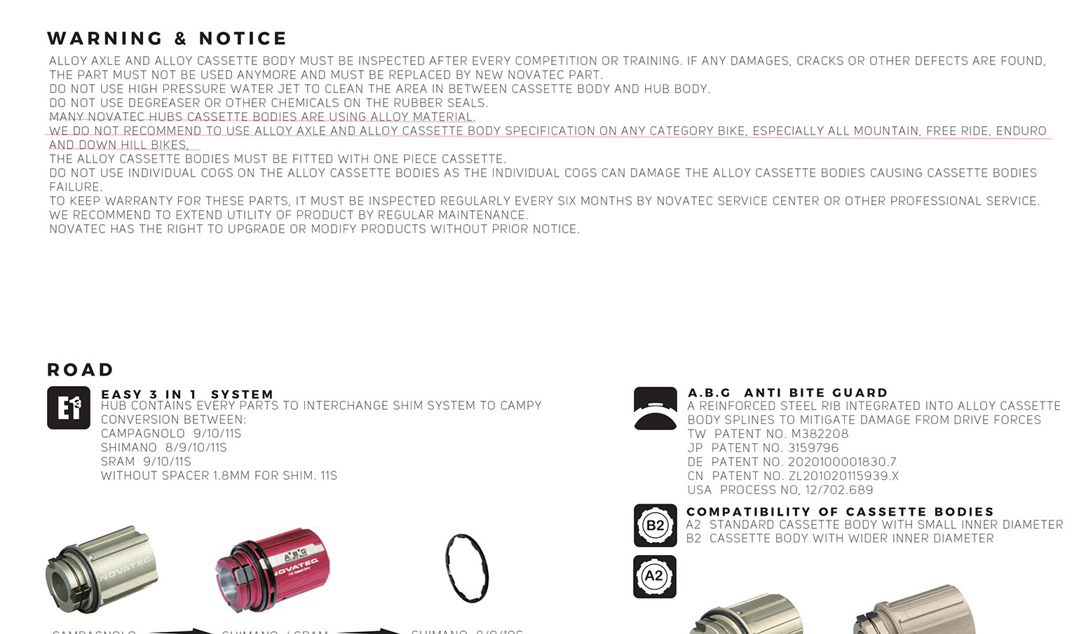 Тази снимка с предупрежденията на Novatec ми се стори изключително забавна! :) Интересно каква е предполагаемата употреба на алуминиевите им главини с алуминиева ос - може би за инвалидни колички със скорости? :) Или за капака на тоалетната чиния? :D
