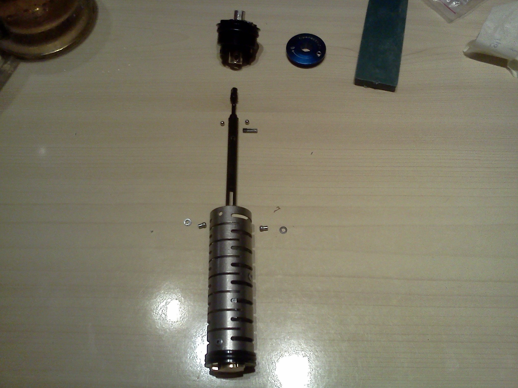 След четене тук-там, съм разглобил горната част на патрона на Motion Control-a, в търсене на проблема. Както се вижда, махнал съм поп-нитовете, извадил съм шиша на гейта. Той е уплътнен културно с О-пръстен, обаче Lockout-a...