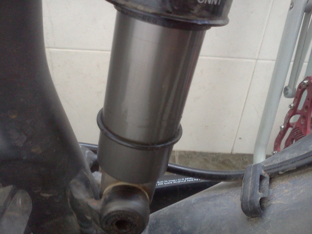 Шока е Fox Float CTD evolution. Нов е, на няма 400км. Макар че Фокс са ми непознати като устройство (засега), нещо не ми се вижда нормално да омаслява толкова. Ето например след 150 км каране колко мазно се е събрало на пръстена:
