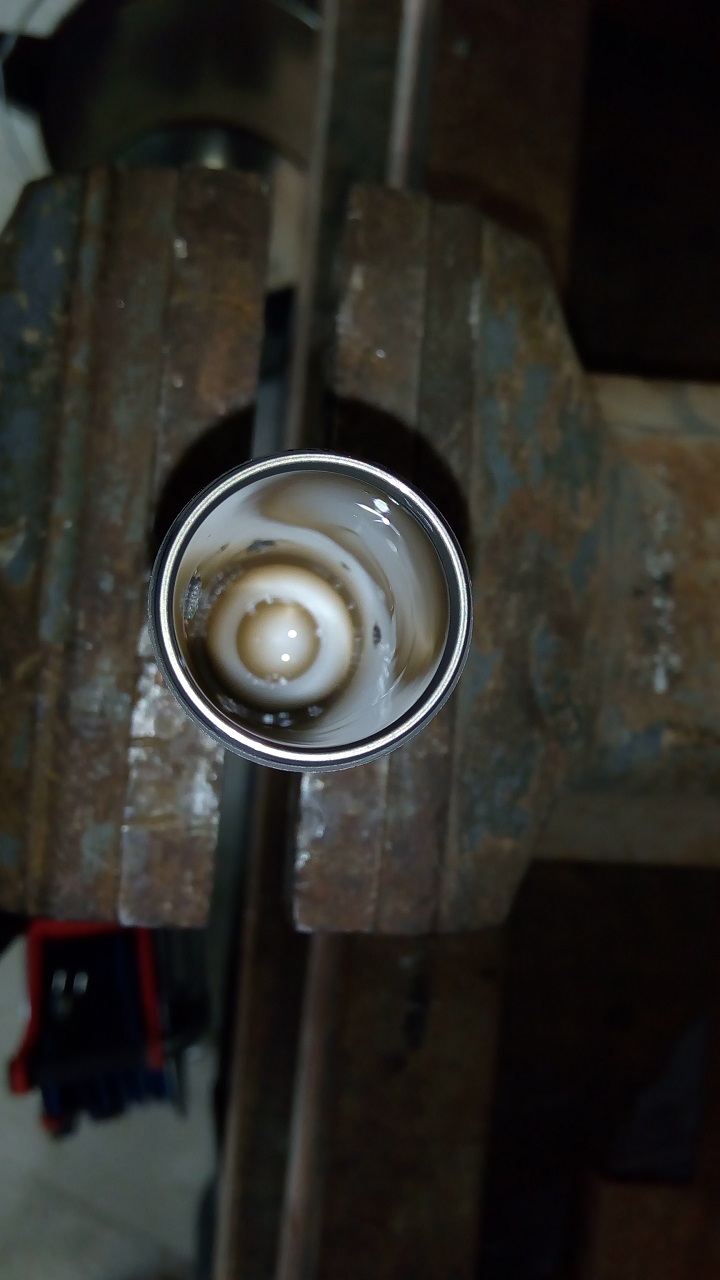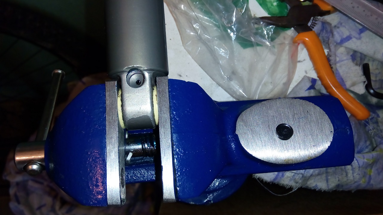 Малко смело си стягал втулките, а и после шока с грапавите челюсти на менгемето. Ползвай дървени подложки, сега ако си наранил алуминия, ще яде тефлоновите пръстени. И парцалите не ми се виждат стерилни :eyebrow: .