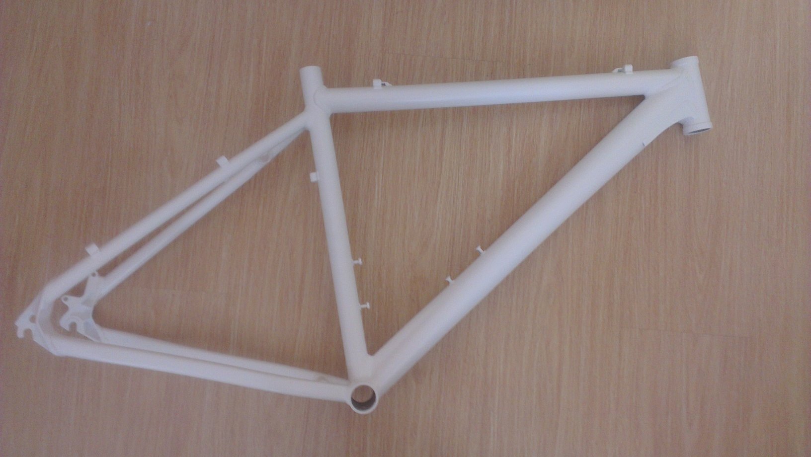 Преди година си купих рамка в доста лош външен вид, което е нормално, като се има предвид каква е "заводската" боя на рамовете. Не посмях да я дам на прахово, защото все още няма окончателен отговор на въпроса омеква ли алуминия от печенето или не и си я боядисах сам - не е трудно и стига да не сте вързани в ръцете резултата е много добър. Не съм бояджия :nono: всичко описано съм го правил вечер в хола или мазето, според колко мръсна или миризлива е работата...