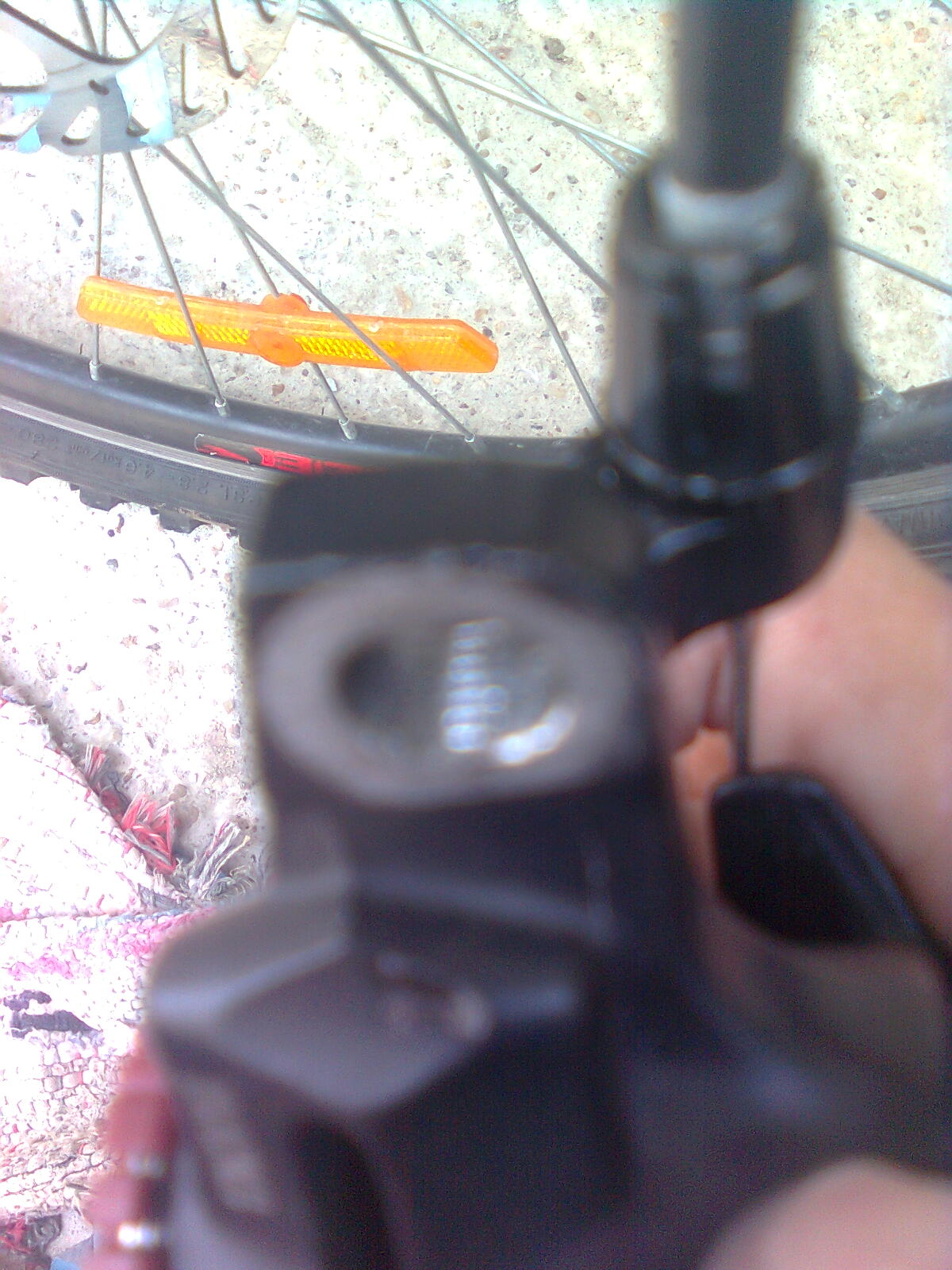 3.Както е стиснато лостчето завъртам съвсем леко горния болт и после долния.Така докато не останат няколко завъртания и като мръдна болта и апарата крива на една страна и сичко се прецаква :xx(: :xx(: