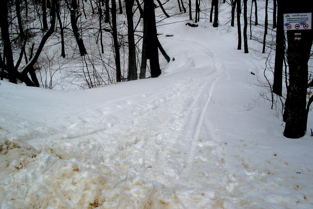 Пътеката е почти неутъпкана, с дебел рохкав сняг. Направо ме отказа и карах по шосето, щото нямаше коли. Но утре ще има. От Тихия кът нагоре пътя е с кишав сняг. След Златните става по-стабилно.