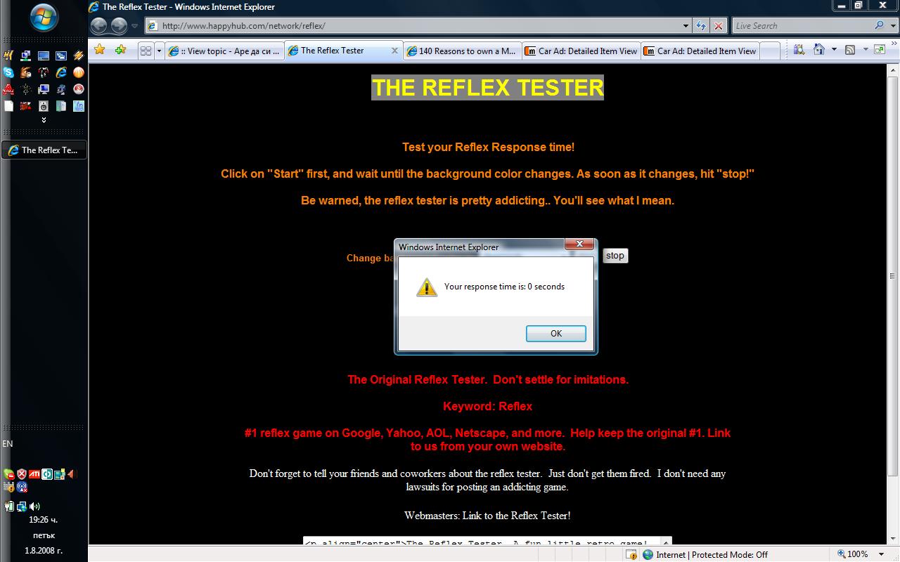 но е доказано, че не може човешки оргазниъм да реагира умишлено за по-малко от 0.1 секунда на дразнител /звуков, светлинен/
