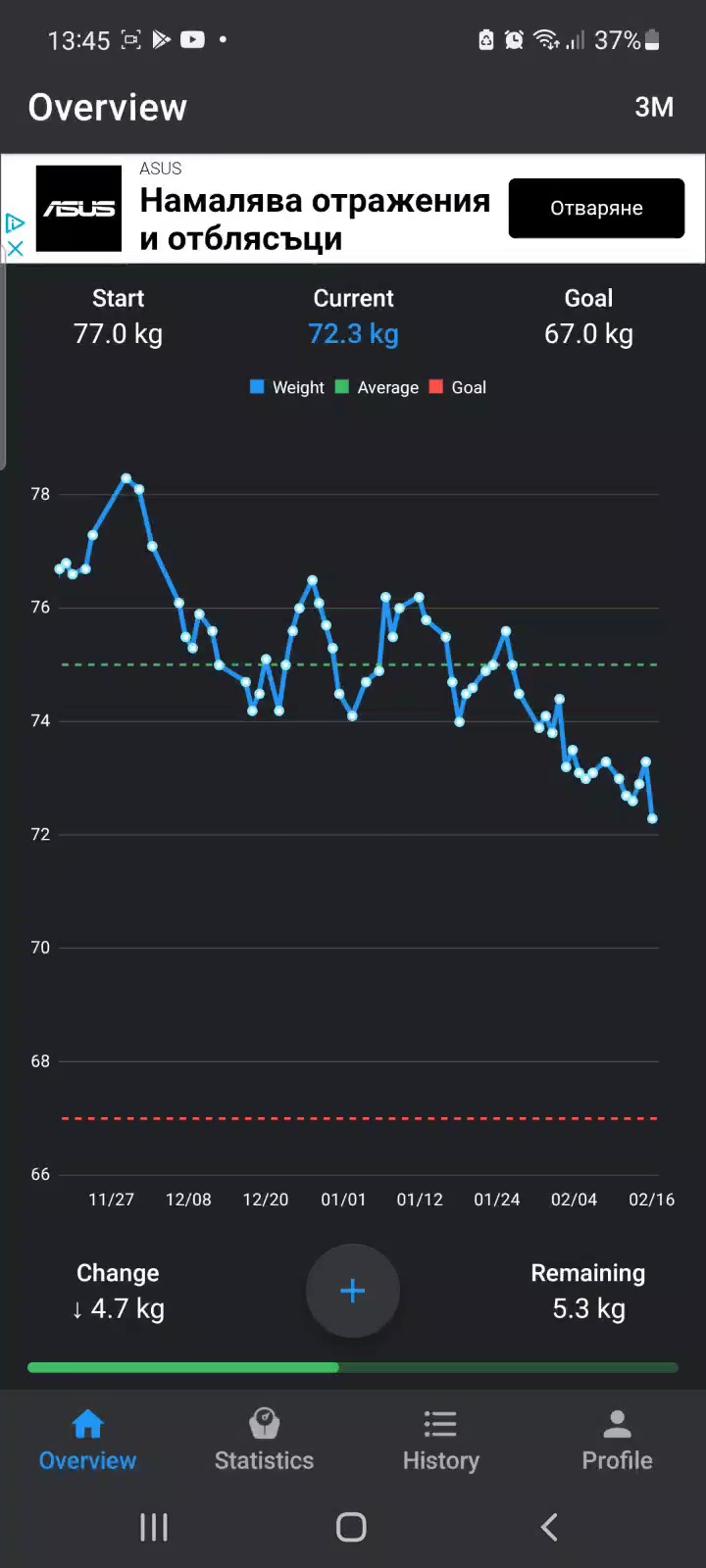 Dido2 написа:Нека всеки който отслабва или просто за информация да постне своя резултат от този калкулатор. Сутрин на гладно тегло и обиколка на корем.