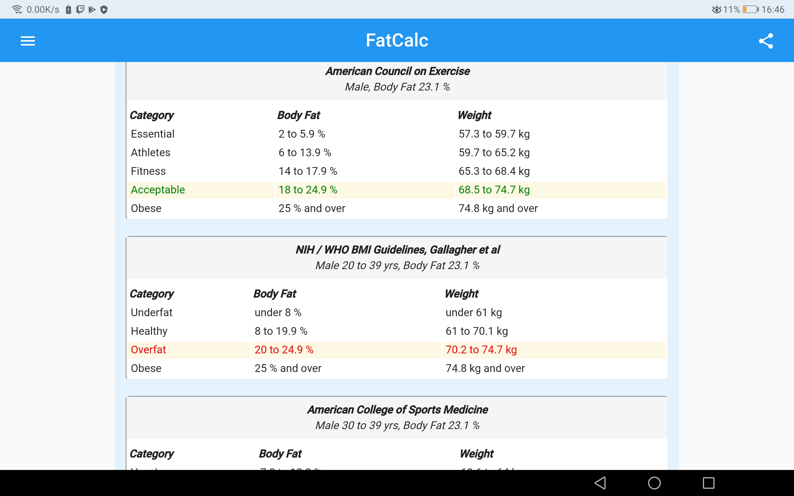 Alexi написа:Dido2 написа:Нека всеки който отслабва или просто за информация да постне своя резултат от този калкулатор. Сутрин на гладно тегло и обиколка на корем.