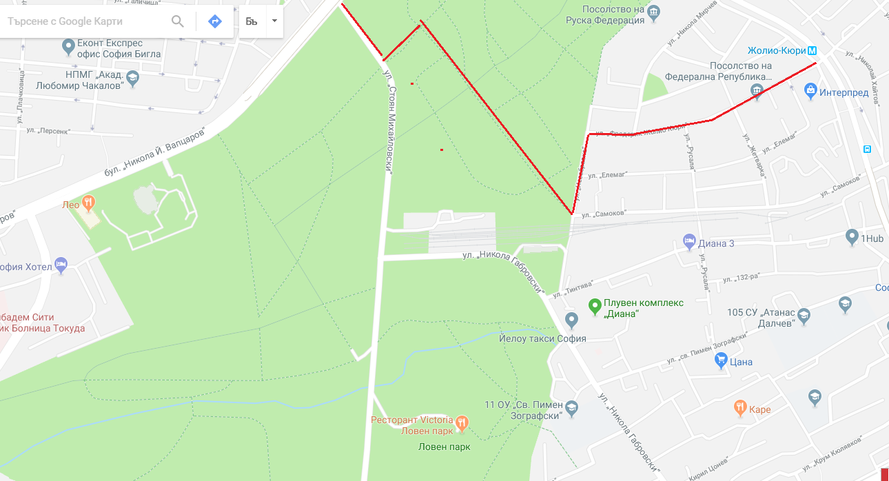 Сега въпроса ми стига до това дали има маршрут подходящ за тротинетка през борисовата градина, така че да разцепя маршрута горе-долу като на снимката и да избегна движението по пътното платно на Драган Цанков.???