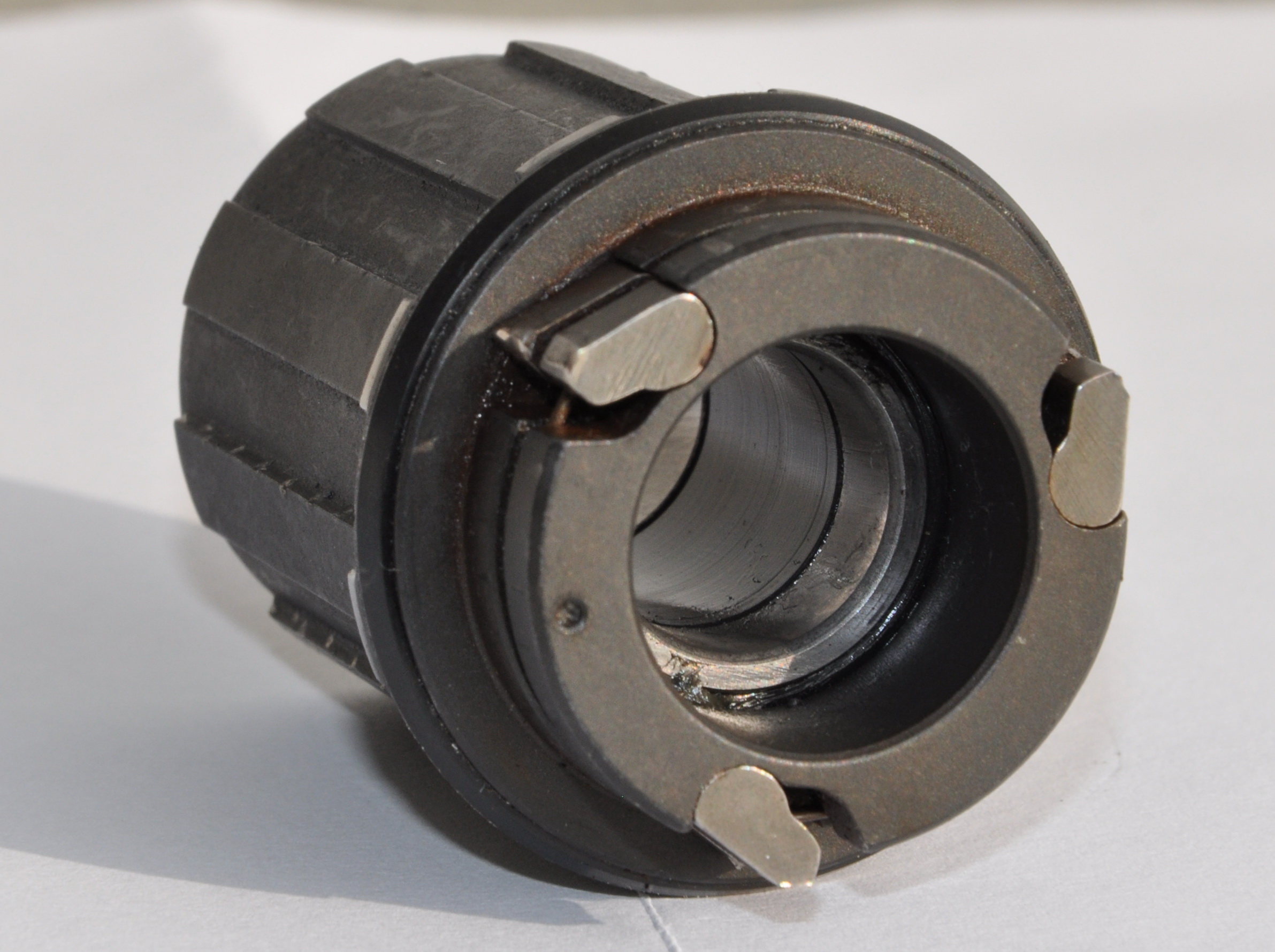 Не съм запознат с устройството точно на този фриихъб, но щом от веднъж е спряло зацепването напълно, значи всички кученца ползват обща пружина. Ако главината зацепва частично гогато тръскаш колелото силно (примерно го удряш в земята), значи проблемът е това и те е сполетяло следното: