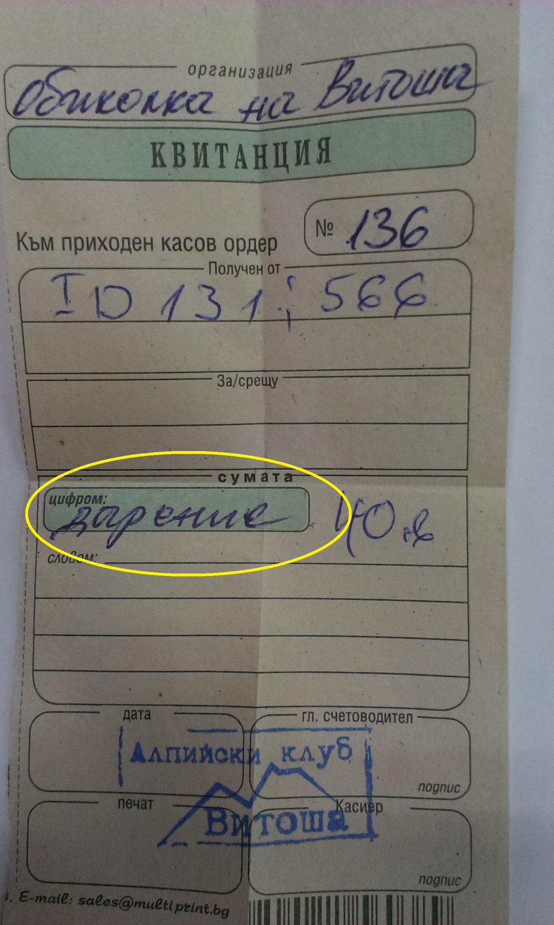 Стартовата такса включва: