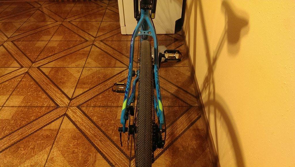 добре е станало ще им свикнеш ,ето как изглежда моя с трекинг каплите с които се движа по шосе :)