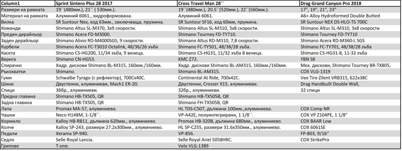 Познат караше "шосейка" из околностите, но в града едвам се справяше с инфраструктурата. Преди 2 месеца си взе твоят най-горен избор и от тогава шосейката събира прах. Естествено е с 3 кила по-тежко спрямо нея, но каза че като скорост не е загубил много, но проблемите му с градското са свършили, а като бонус обикаля и по черните пътища из околията. Колелцето го пробвах и е чудесно за 7 стотака. Драгът е по-скъп, но пък е с механични спирачки - на Травела са хидравлики. :) Спринта не е лош, но снимките са компютърни графики, така че как точно изглежда не е сигурно. Като спецификация е аналогичен на Крос Травел хибрида, но е с 27 скорости, което не е кой знае какво предимство, но пък 150 лв отгоре само за 1 зъбчатка повече отзад, не ми се струва оправдано, а и гумите му са по-тънки.