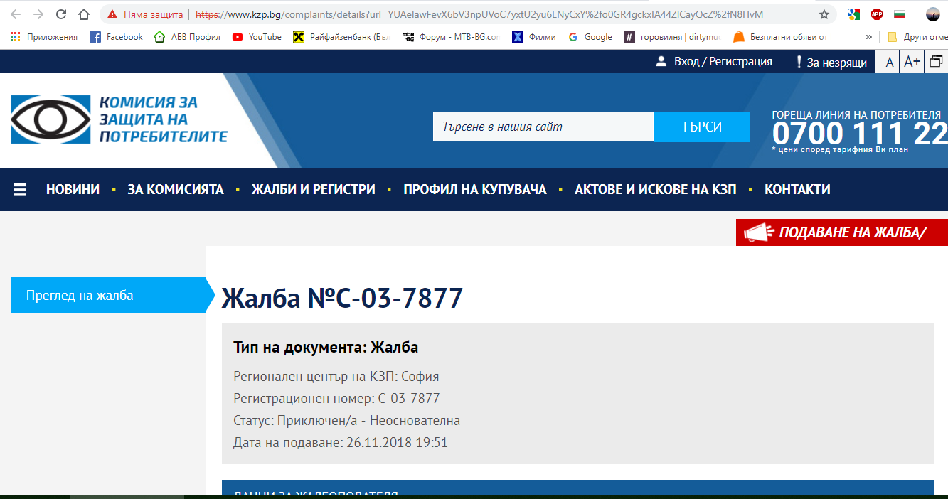 Иначе се казвам Добри!sos написа:Днес отворих да проверя да къде е стигнала жалбата и видях, че статуса от обработва се и сменен на НЕОСНОВАТЕЛНА. Обаче никъде няма обяснение защо![]()