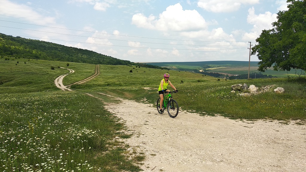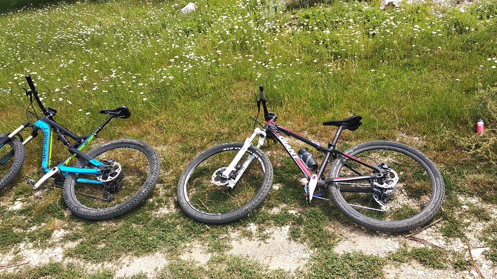 Гигантя се сдоби с вилка - Rockshox 30 Gold ,приятна и лека въздушна виличка . На 45 пси работи много прилично с 40 кг ездач . Щерката кара наравно с мене ( е ,на спусканията е още далеч но с тоя твърдак толкова за сега ). Ето малко снимки от днешното каране 52 км +1000м .