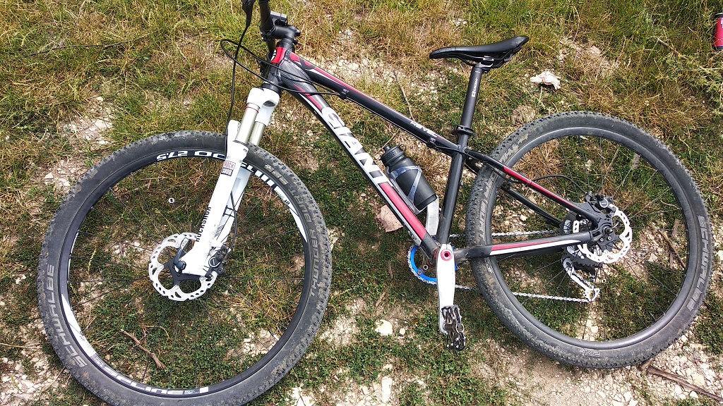 Ново проектче ми се въртеше от известно време в главата ,само дебнех да изпадне подходящата рамка за щерката - а именно детски велосипед около 9 кг ,като бюджета го определих около 500 лв грубо . Изпадна една рамчица Giant Revel 2 с размер 15" ,която по принцип е 26" но с лекота събира 27.5 на 2.2 та реших да го сглобя с 27.5 капли .Рамката е 1600 грама . ХТ 1х10 монтаж ( за касетата съм заръчал и 40т екстендер ) овална плоча 32т ,базови хидравлики с айстех дискове които имах налични ( леко поизносени но за нея са ок ) .Сета капли е 1700 грама ( намерих задна капла под 800 грама отлична ,а предната е чисто нова от една разпродажба ) на 21мм вътрешен ,Гуми Schwalbe Thunder Burt 2.25 отпред и 2.1 отзад ,леки вътрешни гуми .Вилката е алуминиева ,около 700 грама .Повечето части се търкаляха по рафтовете ми ,ползвани но в добро състояние . Получи се 9.4кг велосипедче ,много леко и приятно за каране .И щерката го хареса а това е най важното . :beer: