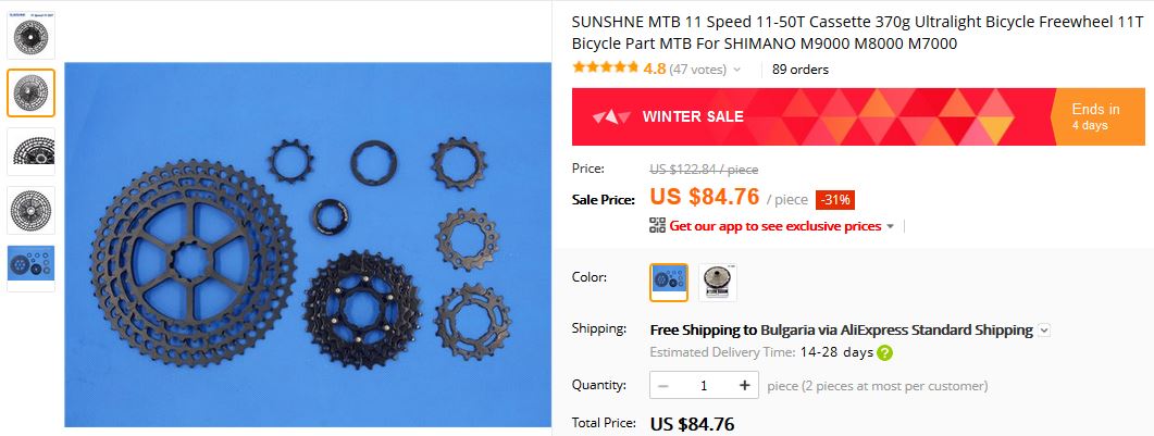 Реших да я пробвам, точно заради теглото, защото е по-лека от SRAM GX 12, и доближава до X01. Има няколко "марки" в "китаиския" сайт, предлагащи я под различно име и цена. Ревютата са добри, но пак не ми вдъхват много доверие.