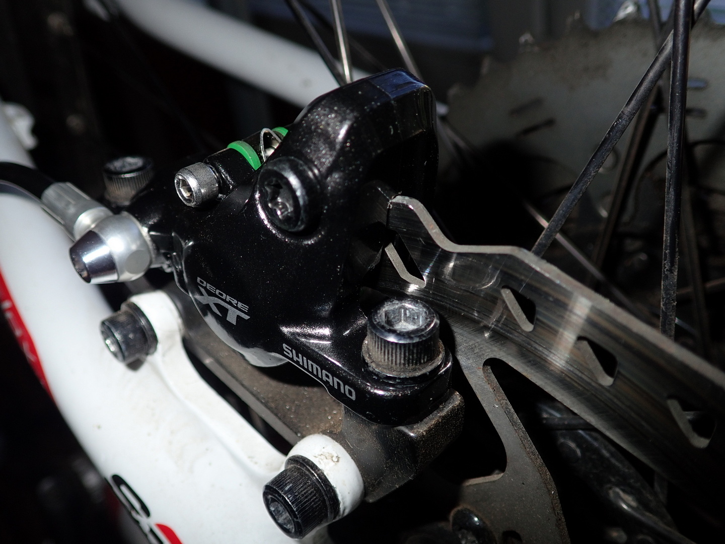Колелото е Shockblaze R5 Evo, оригинално е с някакъв Promax hornet, който минава на косъм, а ако не го сложа внимателно дискът леко почуква в него. Сега слагам Shimano XT, при него няма абсолютно никакво място и дискът заклинва. Дискът е оригиналния promax 160mm, който дойде с колелото.