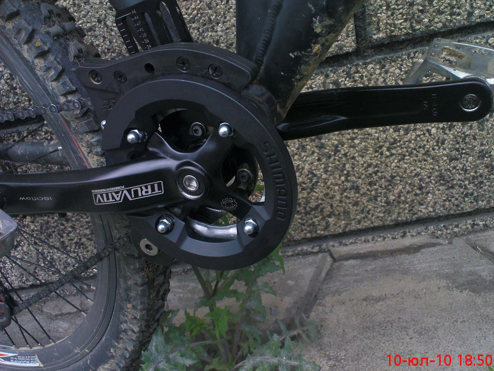 Колеги още една малка стъпка преди смяната на рамката,новите ми курбели + касена(на шлици)+баш-гард Truvativ