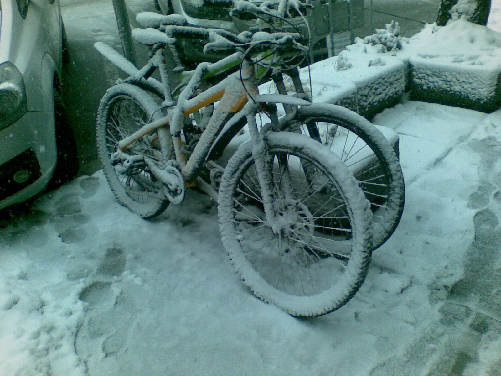 Аз съм отсреща, ама не си оставям колелото на снега. ;)