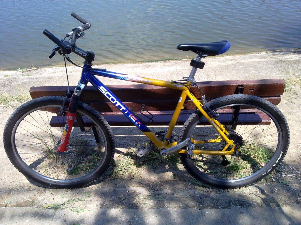 Здравейте казвам се Петър на 29г. от Стара Загота.Взех си байк SCOOT ползвано в мн. добро състояние.Изцяло алуминиева рама.Предна амортисьорна вилка ROCKSHOX .Скорости Shimano Deore XT 9. V Brake на deore които по нататък мисля да сменя с хидравлични дискове спирачки.От към първата смяна която направих е нова верига shimano и задна касета,защото бяха доста поизносени.Като цяло много добре се държи на пътя и плавно превключване на скорости.Гуми Schwalbe Smart Sam в добро състояние.Общо взето това е.Когато ми остане време ще го нащракам :)