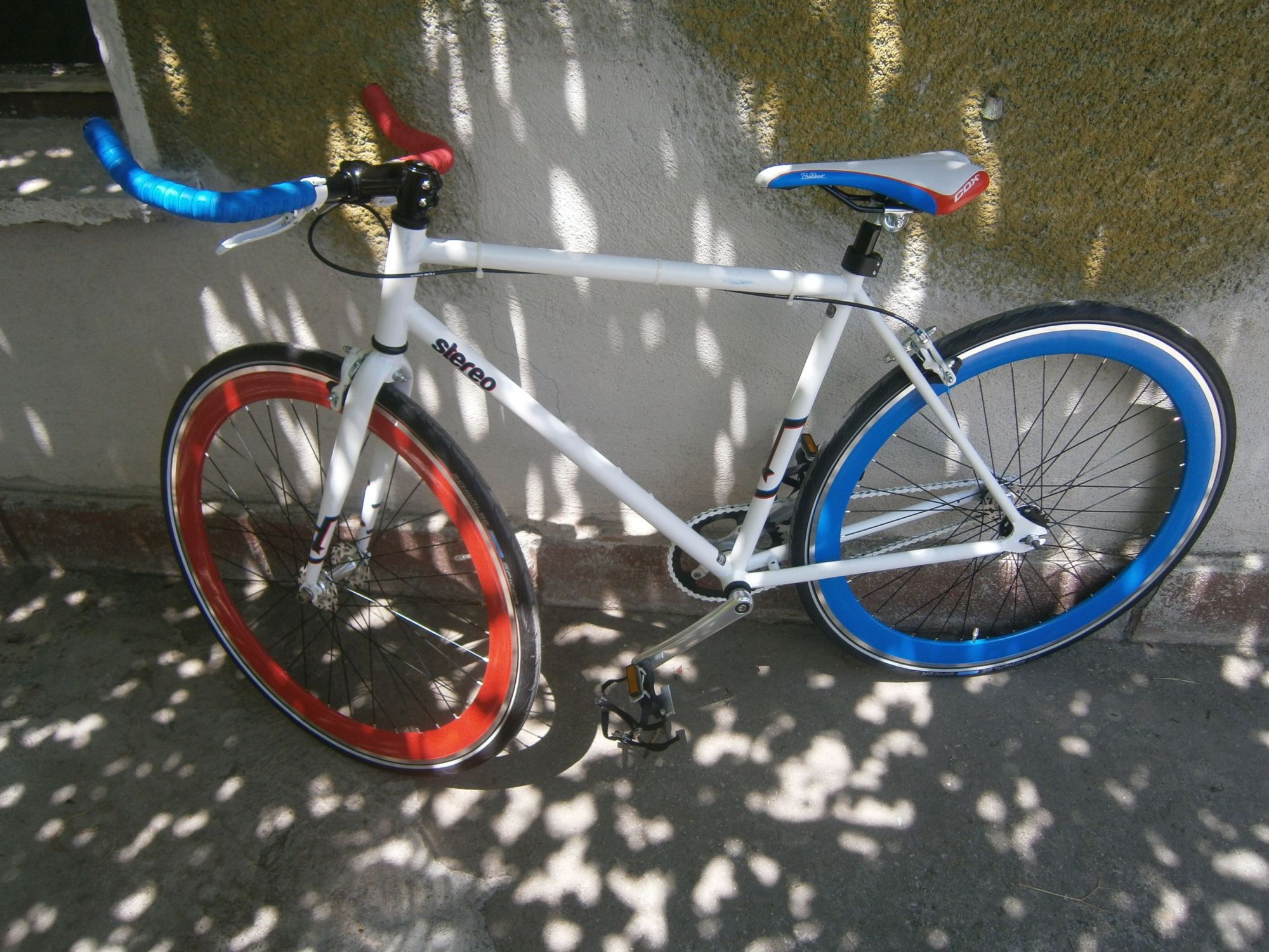 Ами всъщност фабрично е без спирачки и не е с това кормило. Аз му сложих спирачки и обърнах задната "flip-flop" главина, за да може задната гума да се върти свободно, а не като спреш да въртиш педалите да спре да се върти и тя.